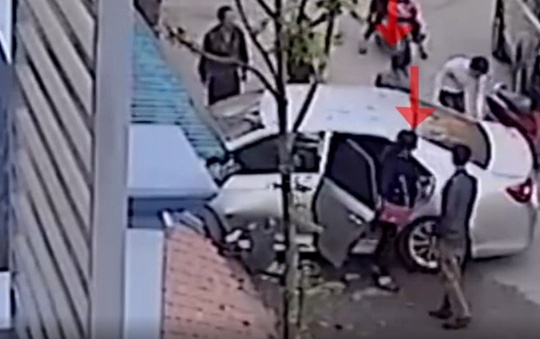 Nguyễn Phương Anh bước ra khỏi xe. Ảnh: Cắt từ clip . |