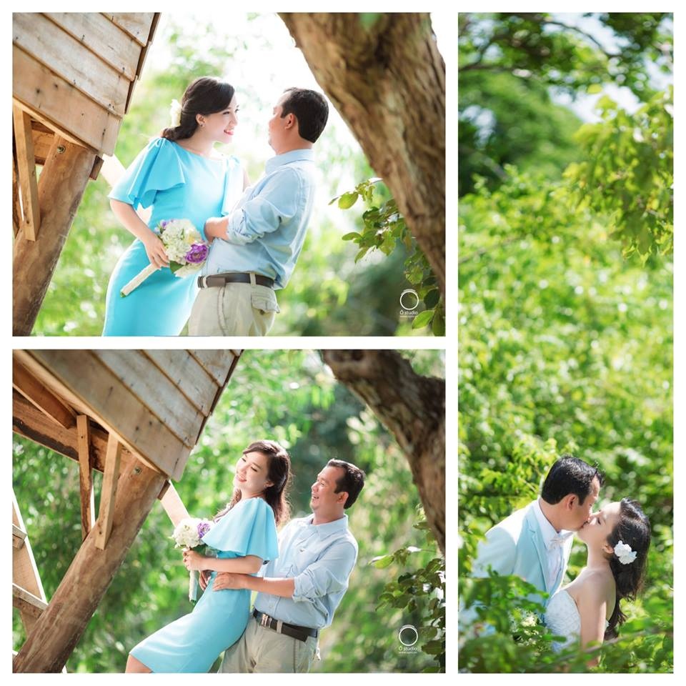 | Việt Hà cùng ông xã trong bộ váy cưới cô quyết tâm giảm cân để mặc vừa. Ngày 9/1/2015 cặp đôi này sẽ tổ chức lễ cưới. Ảnh: Lê Đăng Thiện. |