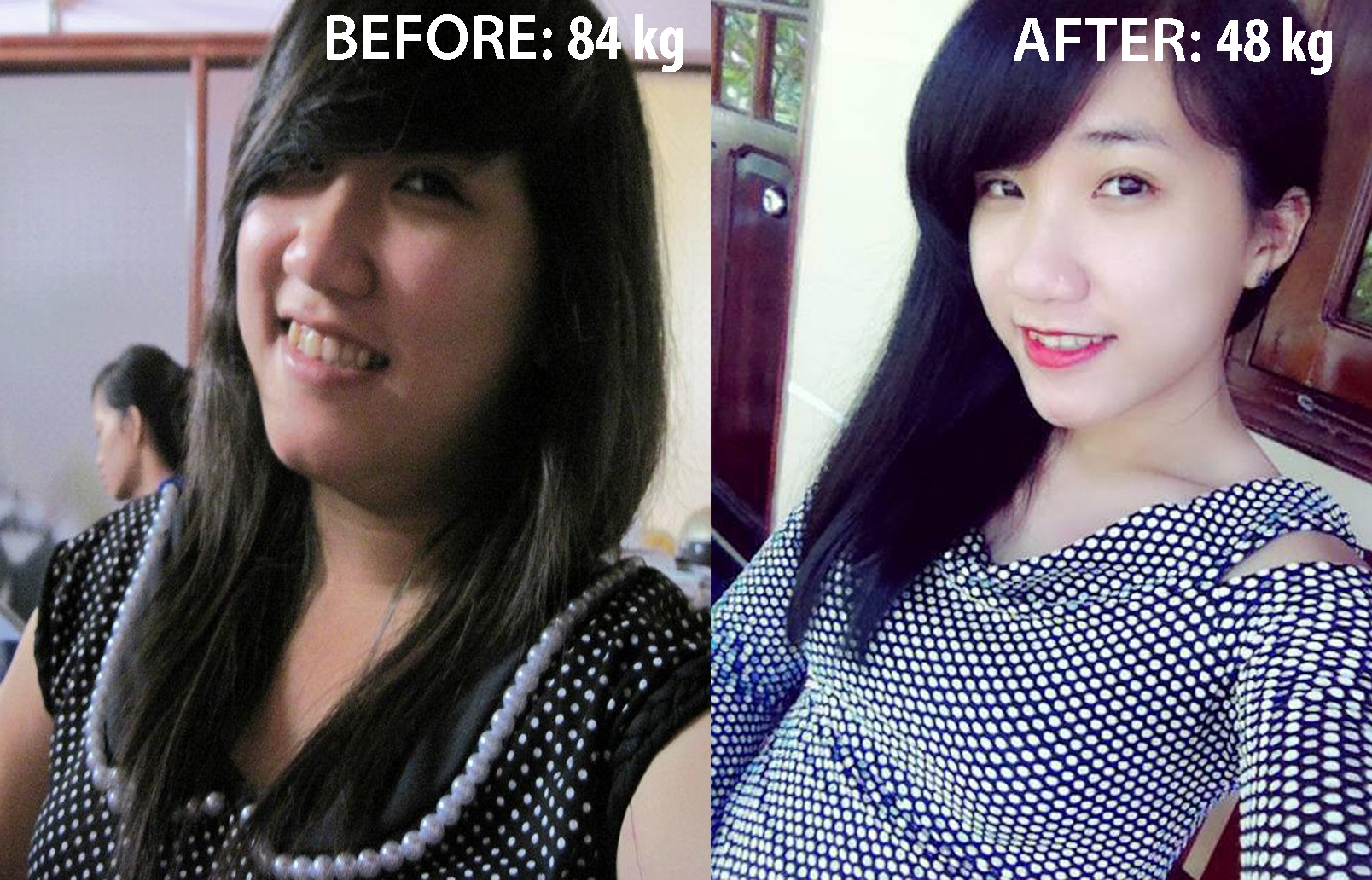 | Hình ảnh lúc Hà 84 kg với ảnh hiện tại khi giảm cân thành công còn 48 kg. |