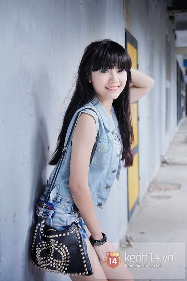 | Kiều My - nữ sinh Hà thành gây sốt với hình ảnh cô gái xinh đẹp, "lẳng lơ". |