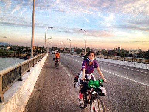 | Cô bạn là thành viên nữ duy nhất trong hành trình đạp xe xuyên Việt của nhóm bạn Hải Phòng |