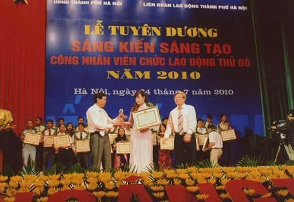 | Cô Lan Phương nhận giải sáng kiến sáng tạo. |