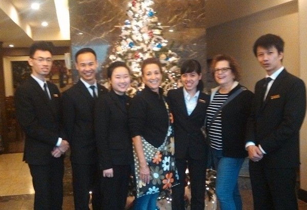 | Theo Thanh Huyền (áo dài đỏ), khó khăn nhất khi làm lễ tân khách sạn là phải chấp nhận không có ngày nghỉ theo ý muốn, kể cả Tết. |