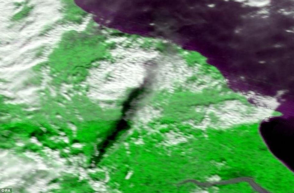| Một cột khói màu đen xuất hiện trong bức ảnh do một vệ tinh nhân tạo của Mỹ chụp khi nó bay qua hạt North Yorkshire của nước Anh hôm 17/1. Ảnh: PA |