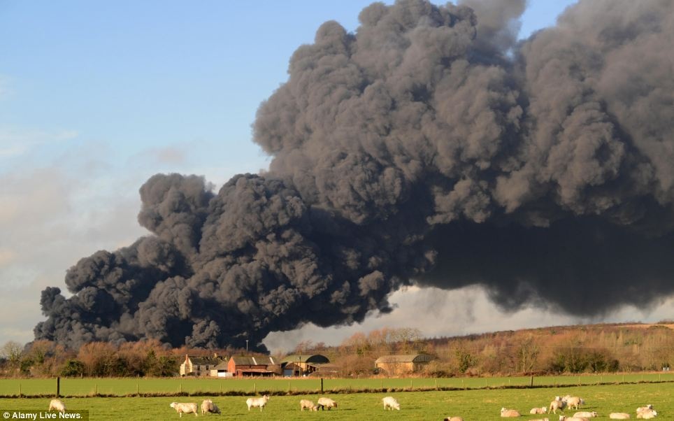 | Trên thực tế, cột khói khổng lồ bốc lên từ một nhà máy tái chế lốp xe ở thành phố Sherburn-in-Elmet, hạt North Yorkshire, Anh. Ảnh: Alamy |
