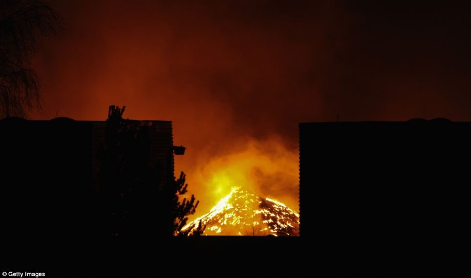 | Một vùng rộng lớn sáng bừng vì đám cháy. Ảnh: Getty Images |