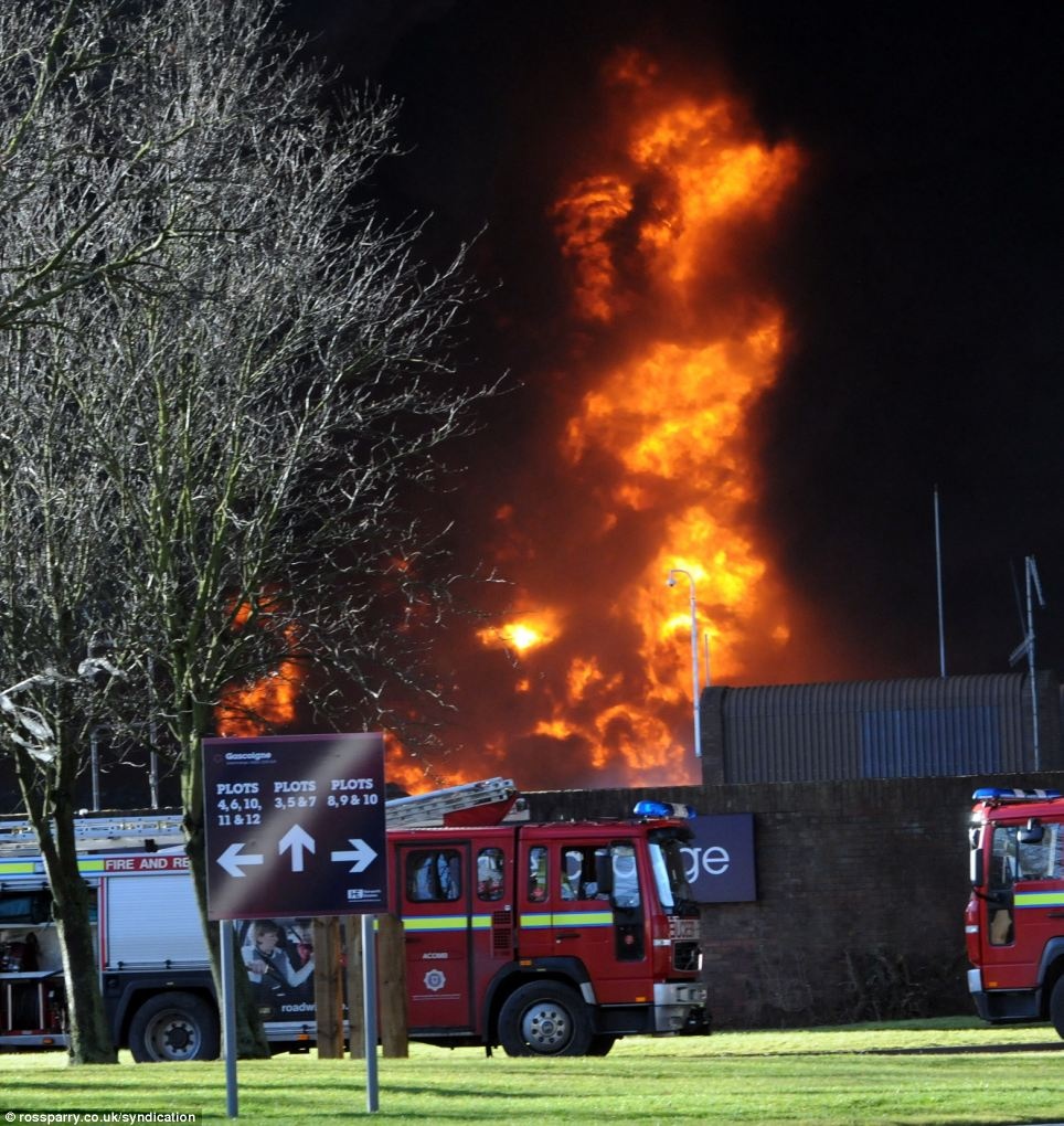 | Do đám cháy bắt đầu lan mạnh từ 8h40 ngày 16/1, hơn 70 lính cứu hỏa đã tới nhà máy để dập lửa. Ảnh: Caters News |
