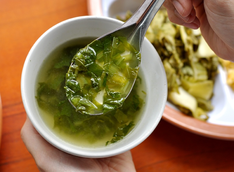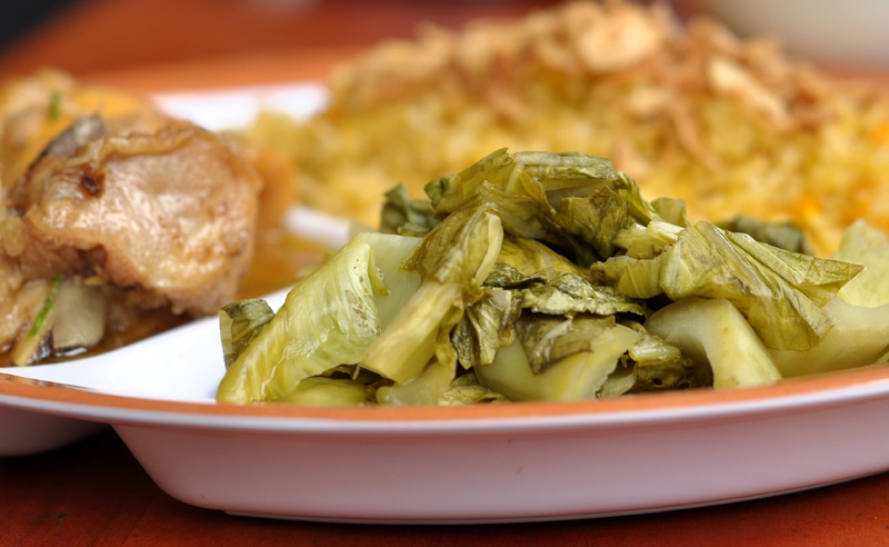 Một suất cơm ở đây chỉ 35.000 đồng mà cũng đủ thịt gà ăn ấm bụng, canh rau, dưa muối đi kèm.
