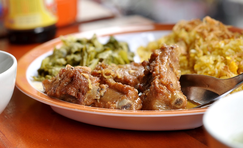 Các món gà hay sườn ở đây không quá xuất sắc, chất lượng tương tự như nhiều tiệm phổ biến. Tuy nhiên, riêng cơm được rất nhiều người "ưng". Cơm đảo với trứng, có lẽ phải được nấu từ loại gạo ngon nên hạt cơm vừa dẻo vừa săn, ăn bao nhiêu cũng không ngấy, để nguội bao lâu cũng không khô. Cơm ngon nên có khi chỉ rưới thêm nước gà rang hay nước sườn rim đã đủ làm khách tấm tắc, ngon miệng.
