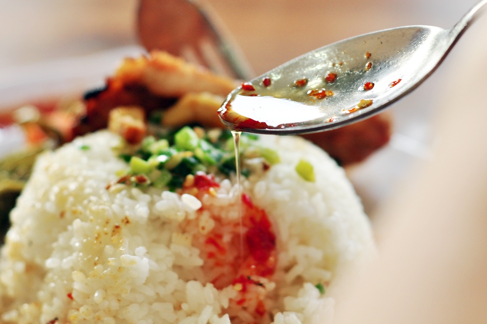 | Chỉ cần rưới nước mắm đặc sánh của quán khách cũng có thể "đả hết veo" suất cơm. |