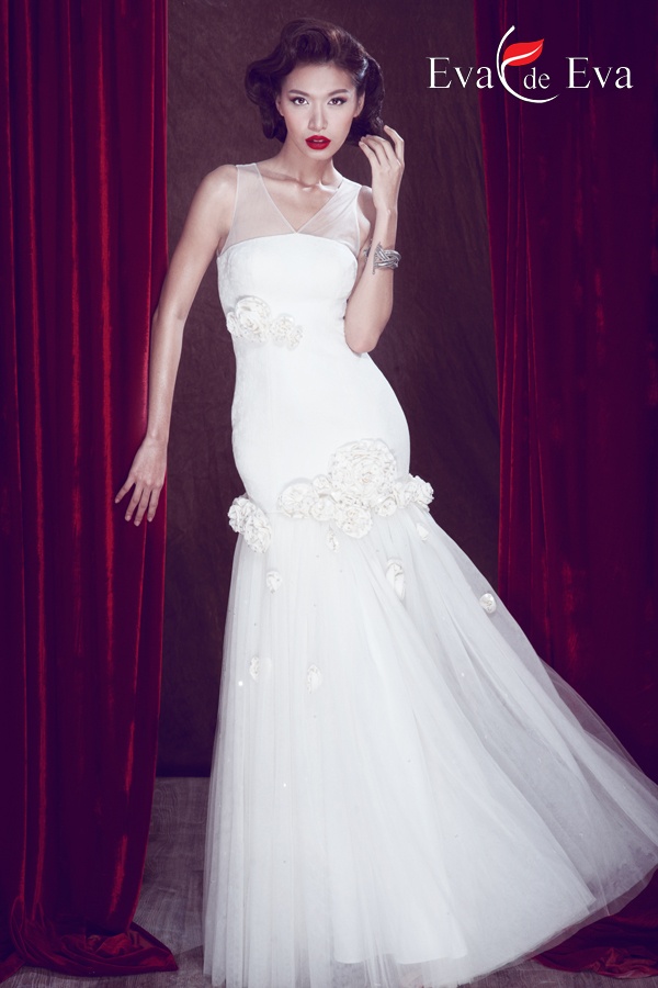 Vẻ đẹp mềm mại của ren luôn là nguồn cảm hứng bất tận của Eva de Eva khi thiết kế những mẫu trang phục dành cho phái đẹp. Đây luôn là chất liệu tôn lên tối da vẻ đẹp quyến rũ, sang trọng của phái nữ. Điều này thể hiện rõ nét khi Eva de Eva tiếp tục giới thiệu những mẫu váy dạ hội được cắt cúp quây ngực tinh tế, tôn tối đa các nét đẹp cơ thể.