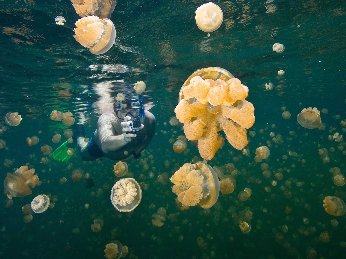 Quần đảo Rock của Palau hút khách bởi hồ nước độc đáo có hàng triệu con sứa. Du khách có thể thoải mái bơi lặn trong hồ và chụp ảnh với sinh vật đặc biệt này. |
