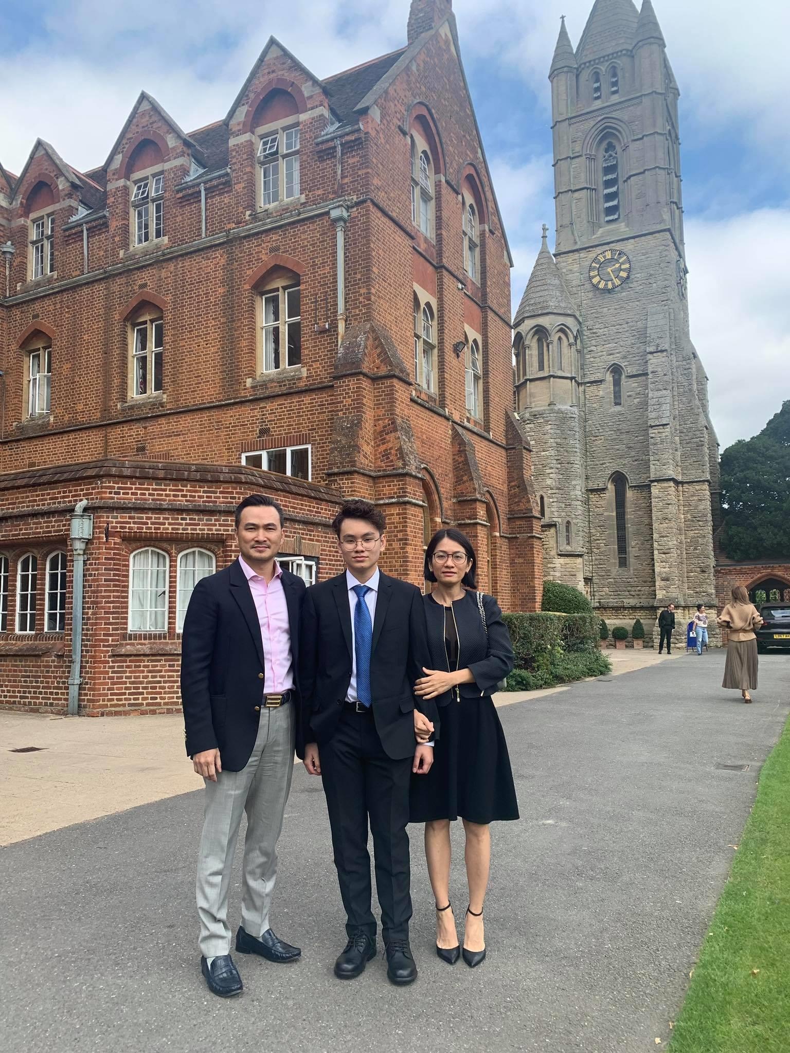 Thời điểm con trai bắt đầu du học, Chi Bảo từng đăng ảnh chụp gia đình đứng tại khuôn viên ngôi trường ở London kèm lời nhắn nhủ con trai.