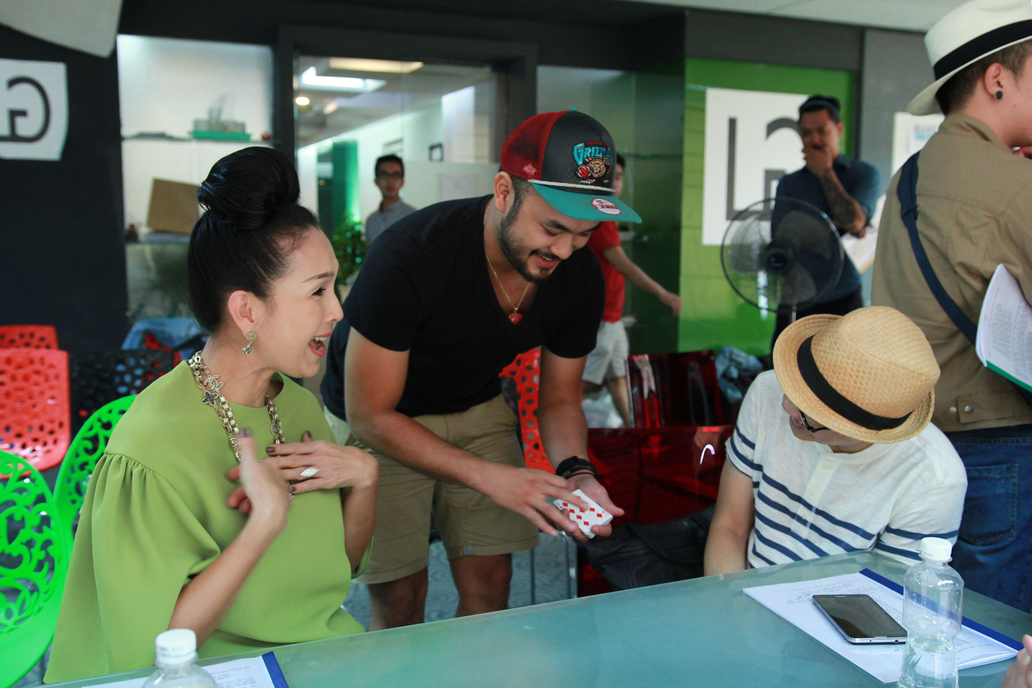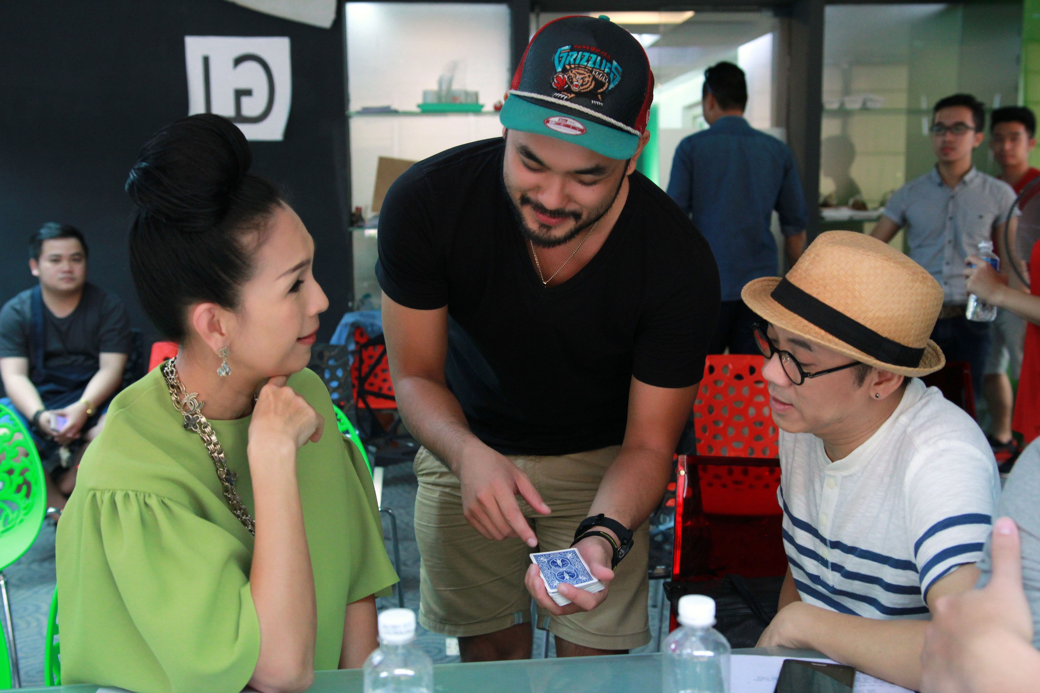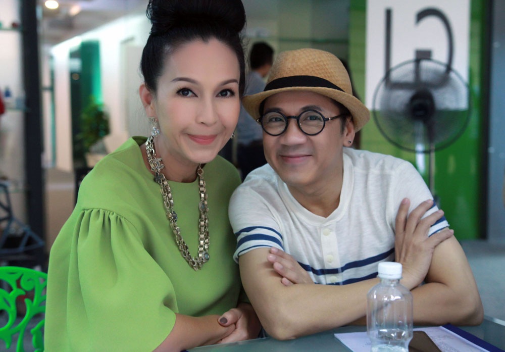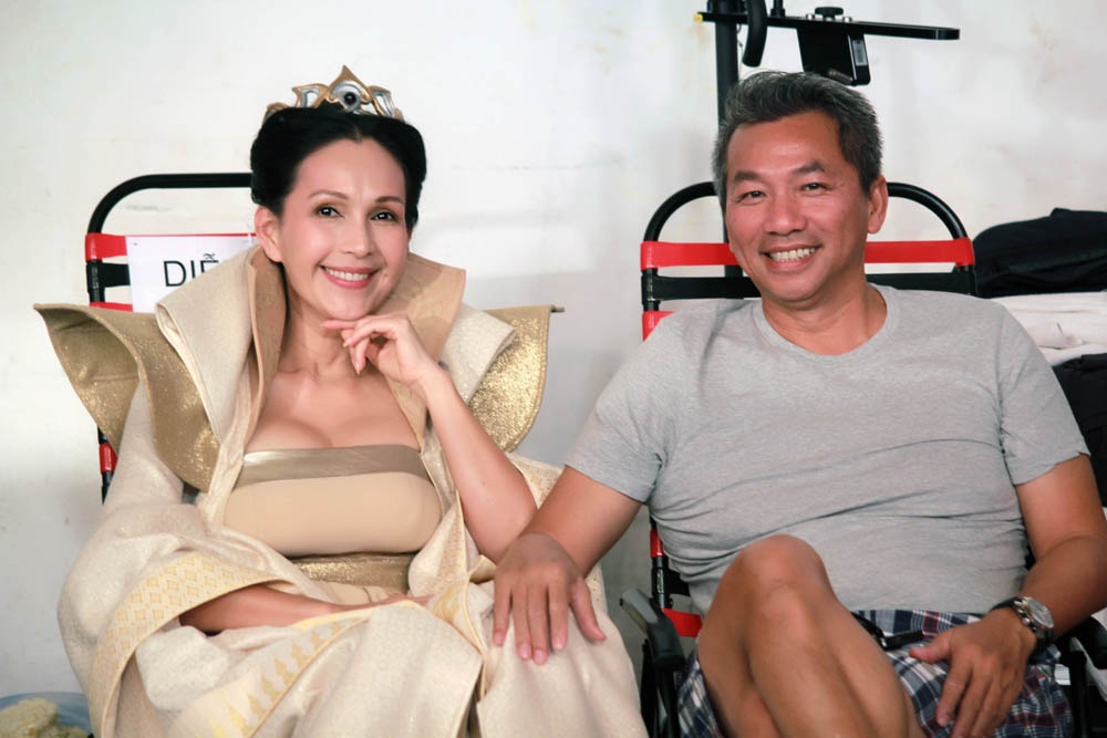 | Nữ diễn viên chụp ảnh cùng bạn diễn - NSƯT Thành Lộc. |
