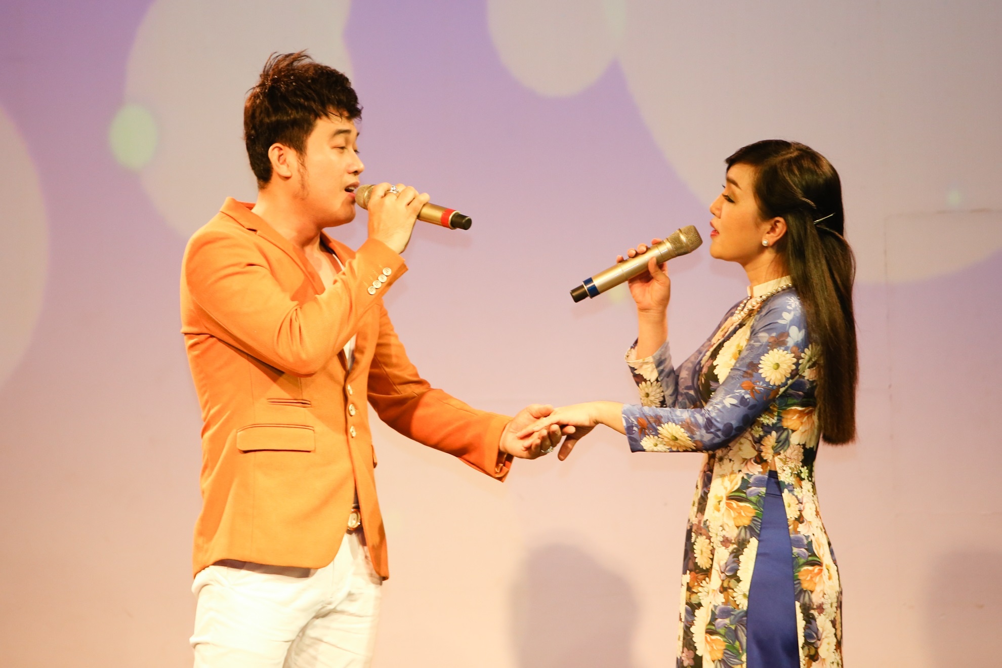 | Khánh Bình và Hà Vân song ca ăn ý ca khúc Sầu tím thiệp hồng. |