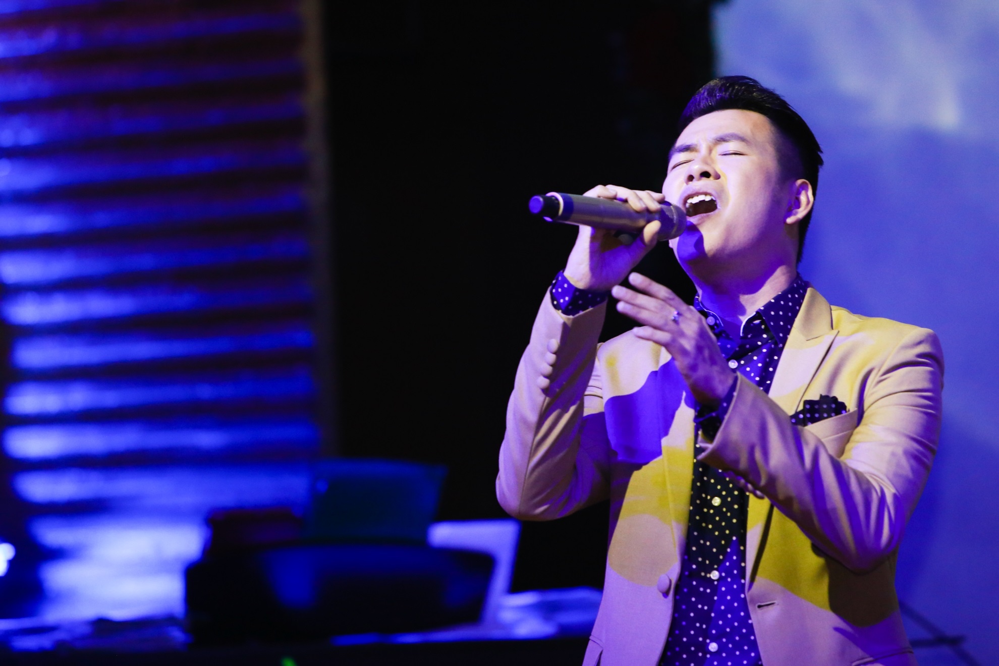 | Quốc Thiên lịch lãm trên sân khấu hát Tình bơ vơ và Nếu anh được lựa chọn. |