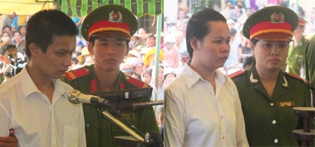 | Nguyễn Văn Phong và Nguyễn Thị Thắm tại phiên tòa. |