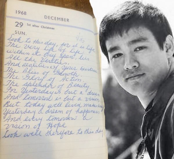 Và đây là một trang trong cuốn sổ tay anh đã viết: "Hãy nhìn vào hôm nay, vì đó là cuộc sống".