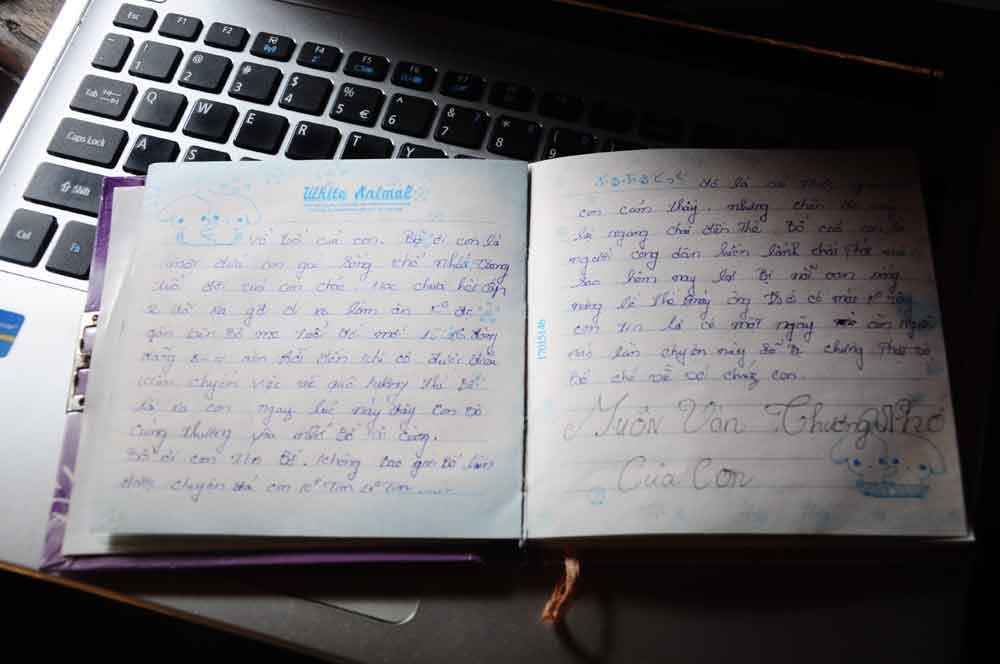 Đưa lại cuốn sổ bìa màu tím đã bị bong chóc một phần nào cho phóng viên xem, đôi tay người đàn ông 54 tuổi vẫn còn run. Bên trong, Quyền viết: "Ngày 2/1/2005. Hôm nay là ngày mùng 2 Tết. Đây là cái Tết thứ hai bố xa nhà rồi bố ơi. Đêm qua, con đón giao thừa một mình ngoài cửa, con đã khóc rất nhiều. Khi ấy pháo hoa ở phía xa rực trời. Ở trong tù, không biết bố có được đón giao thừa không nữa. Bây giờ thì con chẳng thể làm gì được, chỉ thầm cầu mong cho bố khỏe mạnh, sớm trở về với gia đình. Bố ơi, bố có nghe thấy lời con nói không. Con nhớ bố nhiều lắm!”.