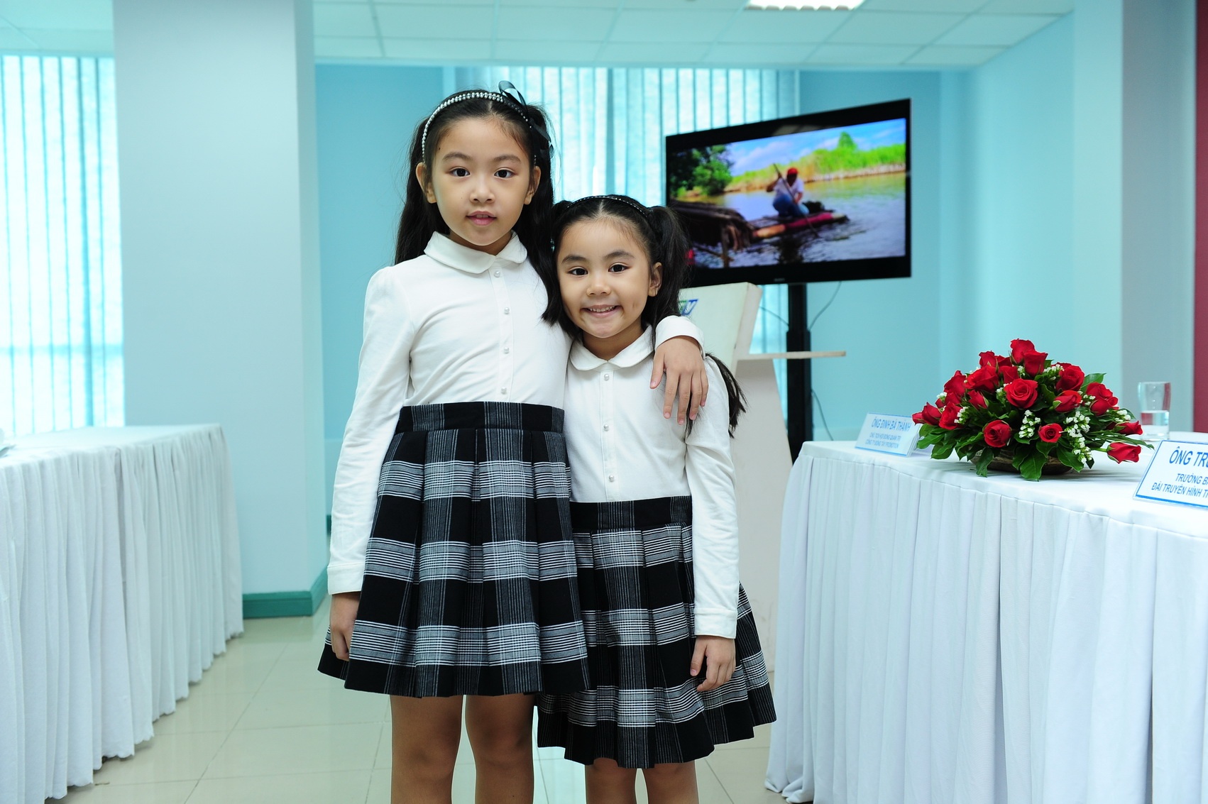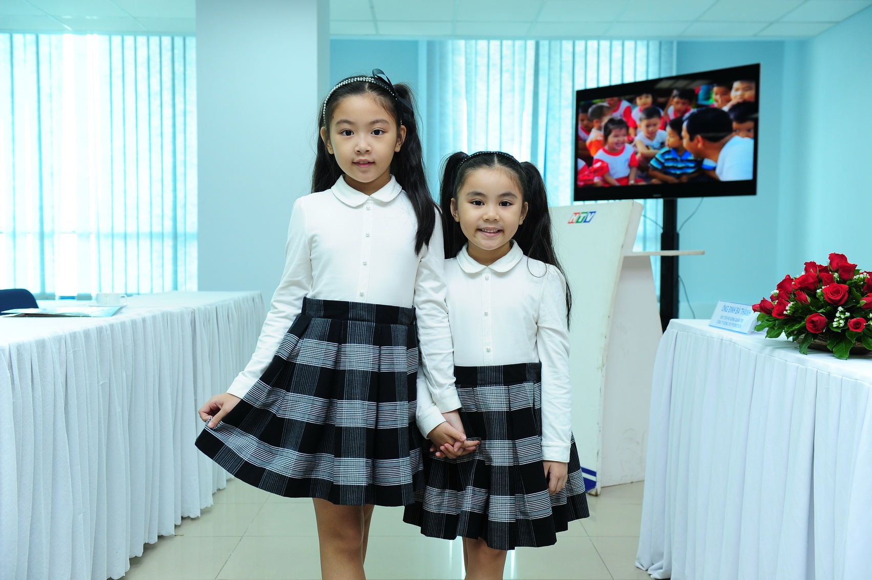 Hai công chúa xinh đẹp nhà Quyền Linh đến họp báo để chúc mừng bố đảm nhận vai trò MC chính trong chương trình truyền hình thực tế "Cùng xây tương lai".