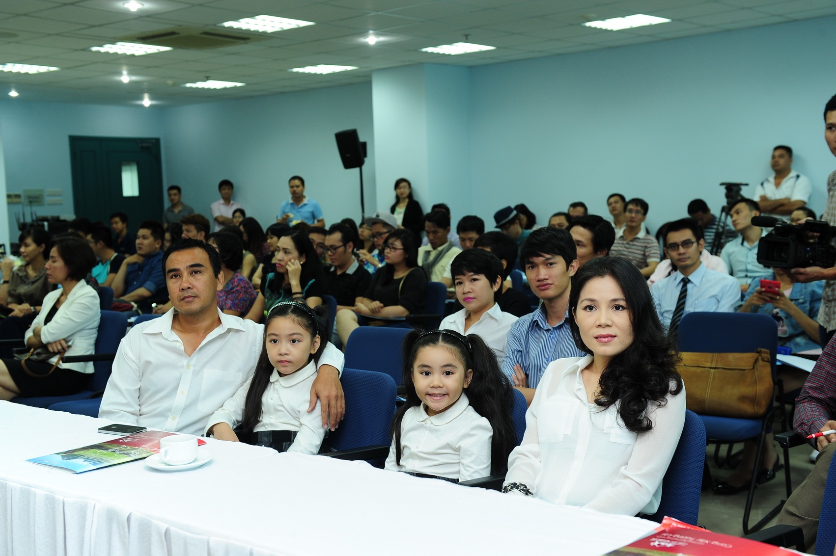 | Trong buổi họp báo, Quyền Linh và vợ đã dẫn theo hai cô con gái đáng yêu giới thiệu trước công chúng. |
