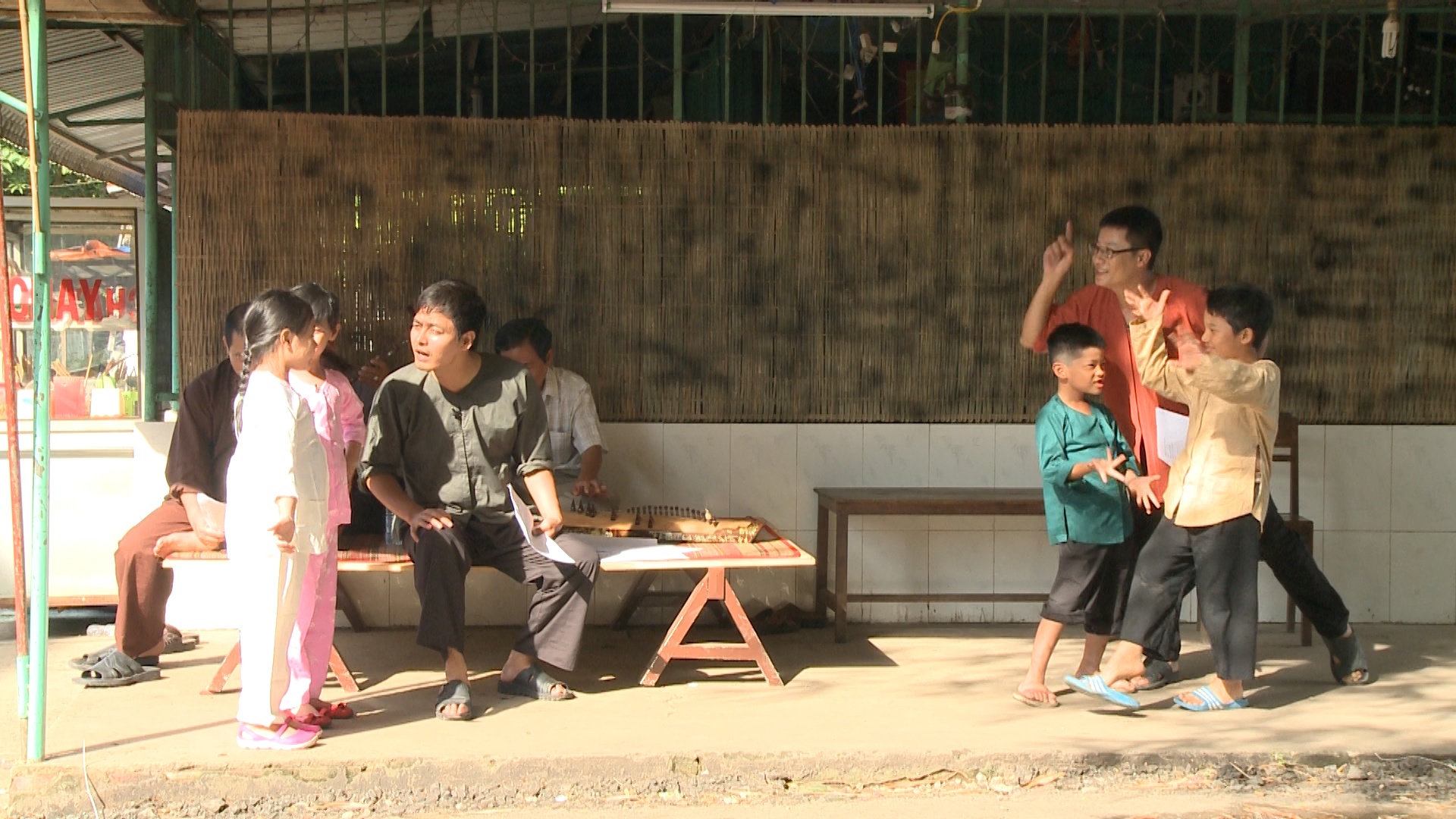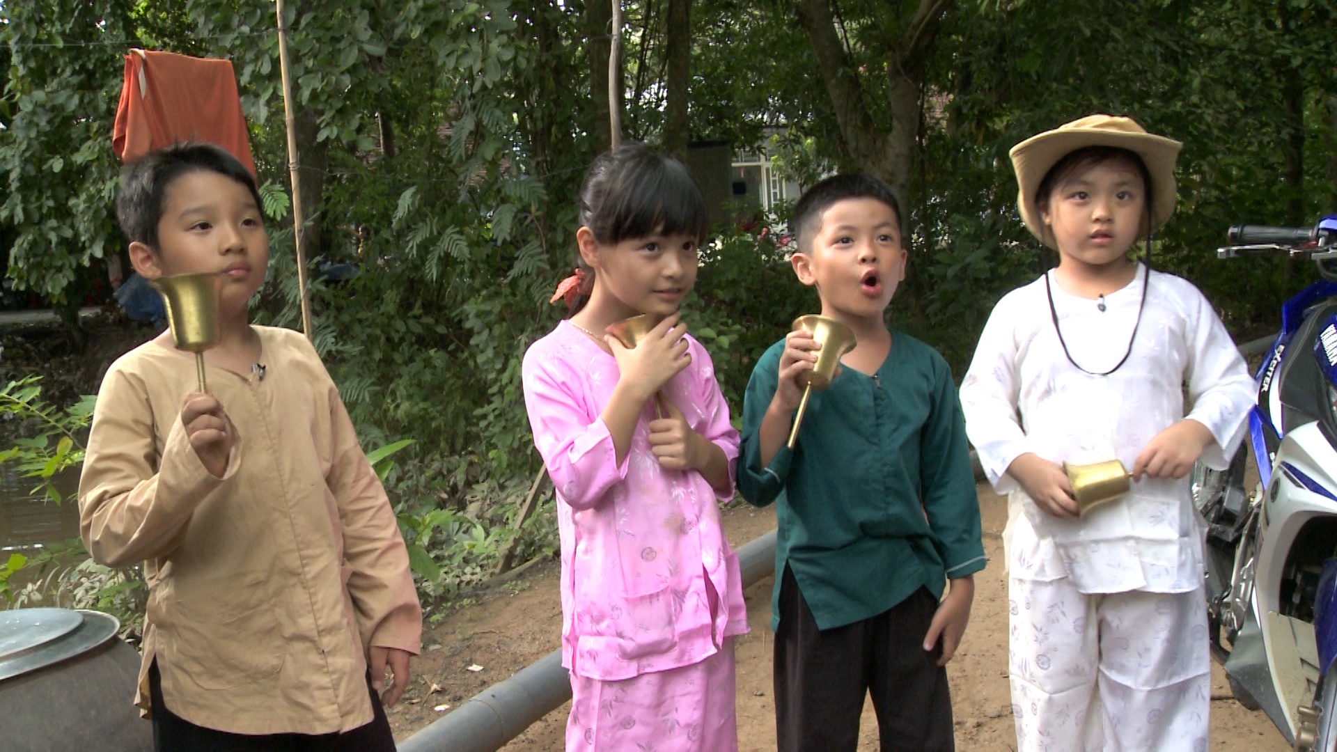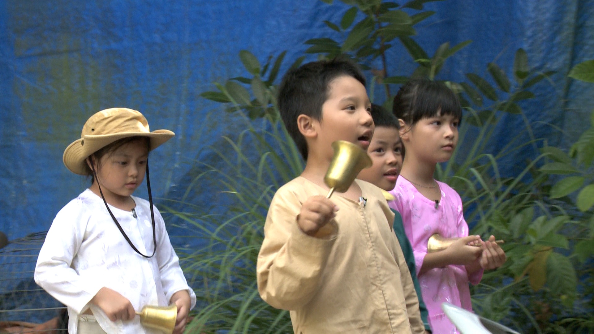 | Sau khi tập luyện, các bé nhận nhiệm vụ đi mời bà con dân làng đến xem buổi biểu diễn. |