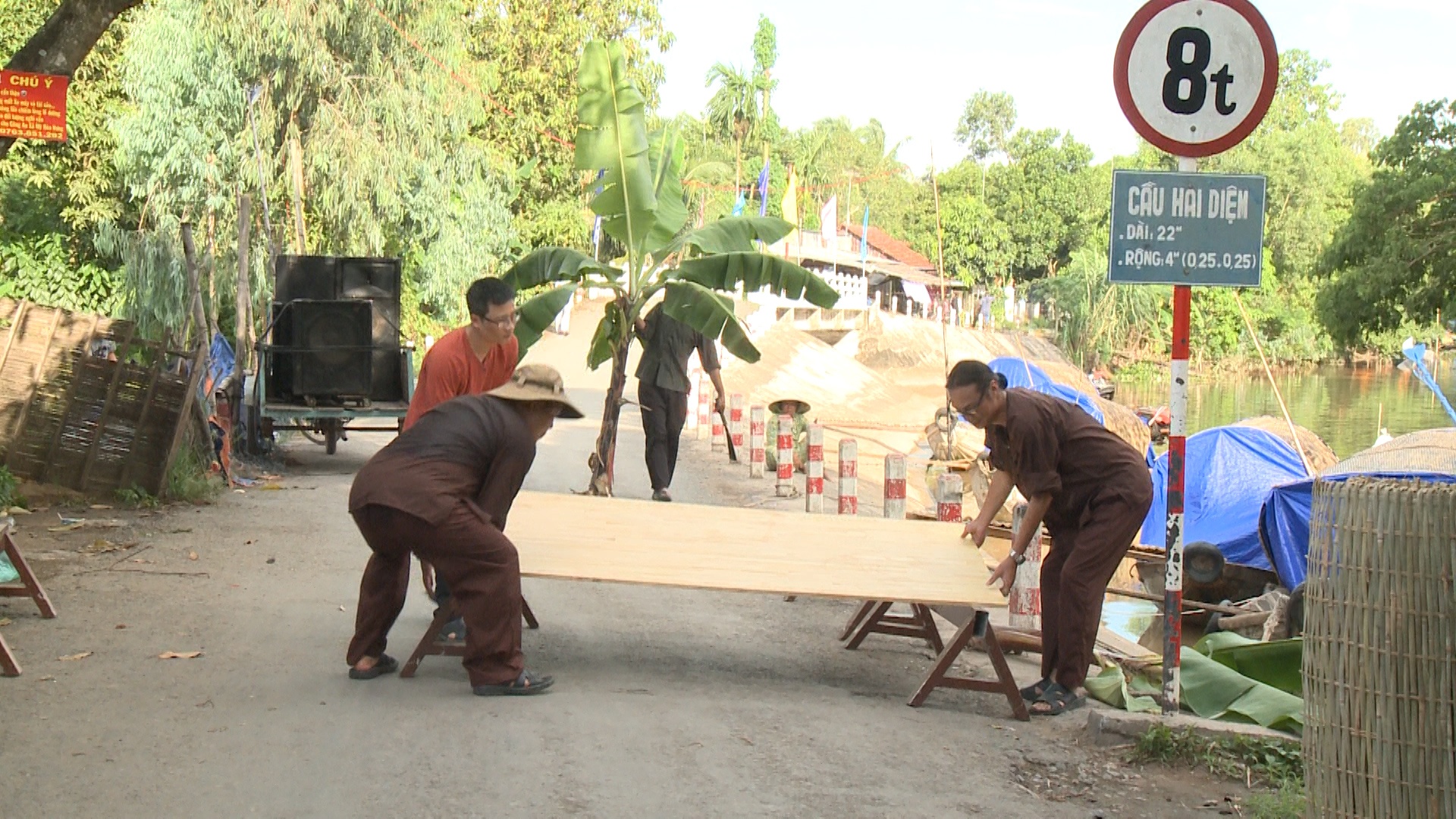 | Sân khấu ngoài trời giản dị được các bố chung tay thực hiện. |