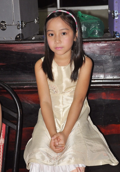 | Mỹ Anh - con gái út của Mỹ Linh lần đầu tham gia biểu diễn trong chương trình Bài hát yêu thích. |