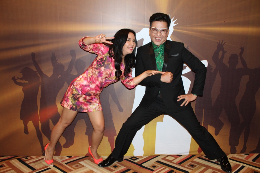 | Ngân Quỳnh và Thanh Bạch tỏ ra tinh nghịch trong suốt quá trình họp báo. |