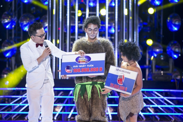 Khương Ngọc - Hoàng Quân nhận giải ngay trong trận đầu ra quân. |