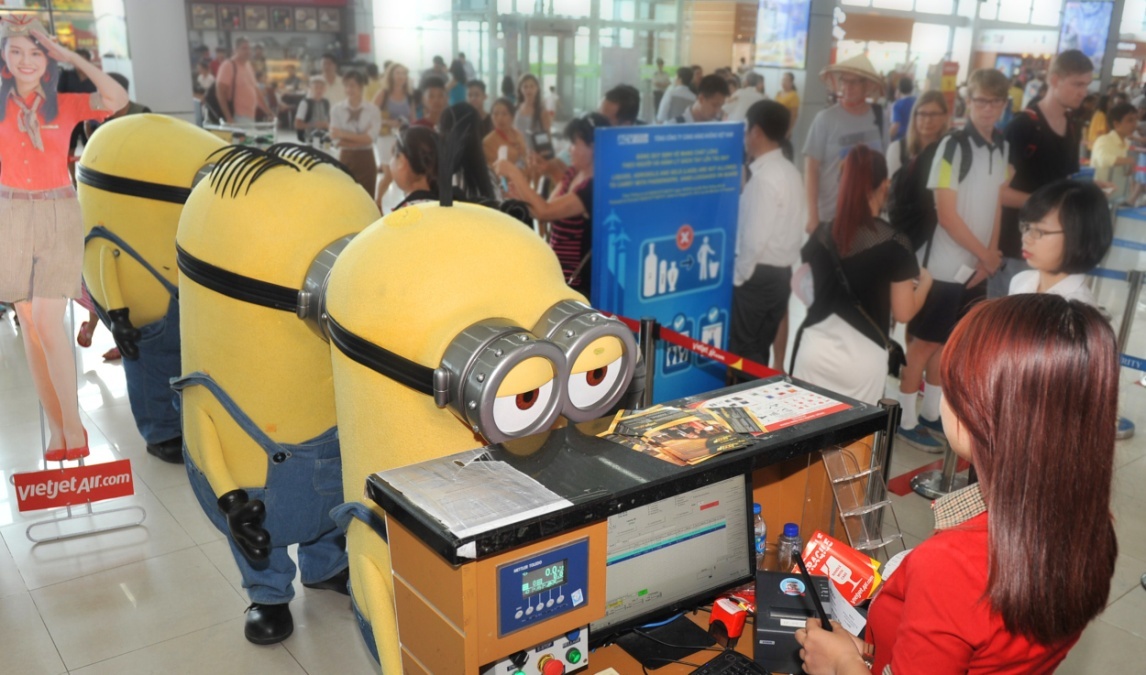 | Hành khách vừa gặp gỡ Minions vui nhộn vừa săn được vé máy bay với giá hấp dẫn. |