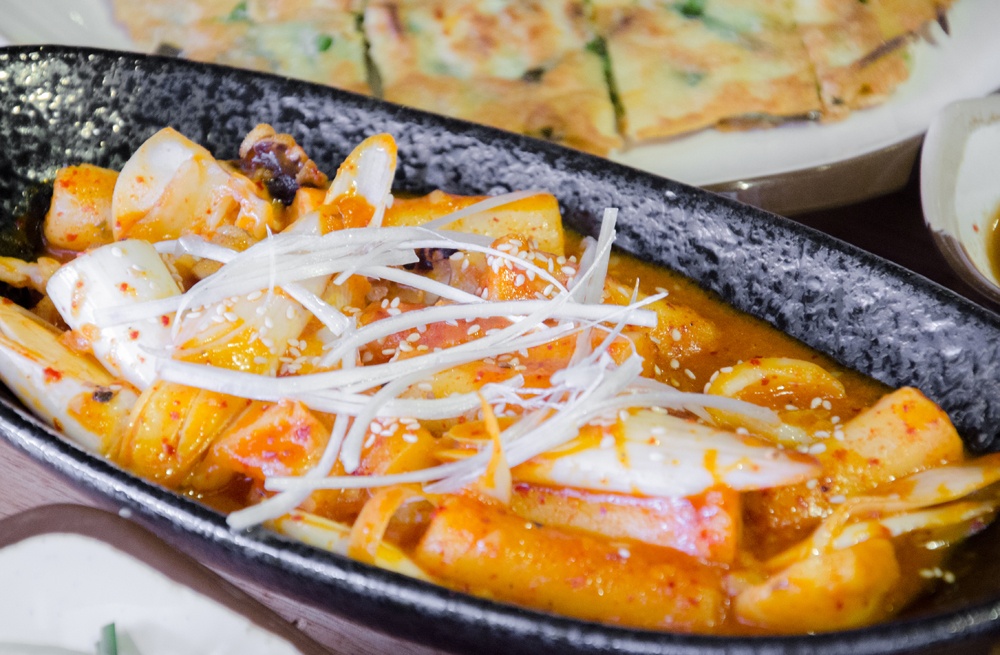 | Tokpoki hải sản - món ăn đặc trưng của Hàn Quốc với bánh gạo dai và nước sốt cay lạ miệng. |