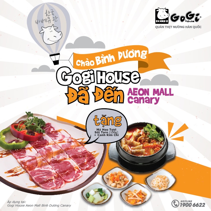 | Tại GoGi House Aeon Mall Bình Dương, thực khách được miễn phí một đĩa thịt nướng và một canh Kim Chi khi đi nhóm 4 khách. |