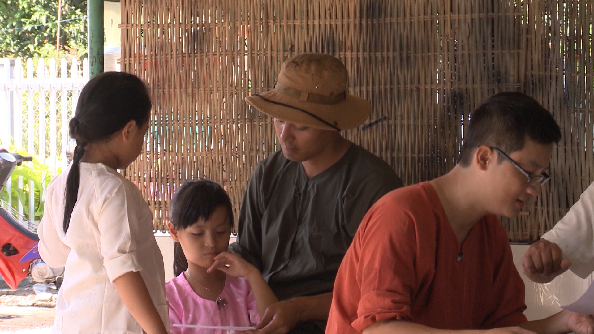 Một lát sau, mọi người đều tập trung và được bác nghệ sĩ cải lương hướng dẫn cách hát và diễn một trích đoạn ngắn trong vở Ba Giai Tú Xuất - đây cũng là nhiệm vụ mới cho các bố con trong buổi chiều.