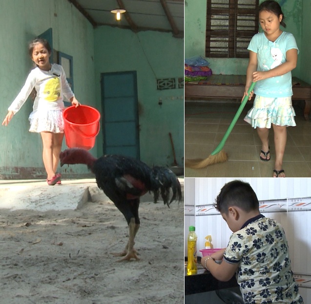 Hóa ra không có người lớn, công việc thu vén nhà cửa, chăm sóc vật nuôi cũng không phải là quá khó khăn. Bi béo còn tỏ ra khá đảm đang khi nhận rửa bát cho cả nhà.