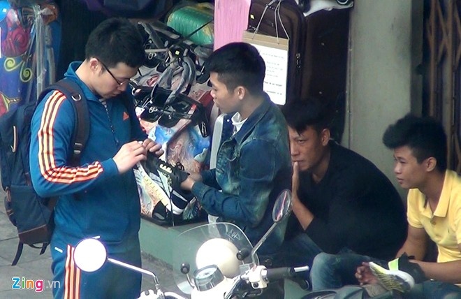 Công an Hà Nội đã điều tra, xử lý nhóm đánh giày trấn lột khách du lịch (3 thanh niên bên phải) sau khi Zing.vn đăng tải phóng sự. Ảnh: Phan Anh. |