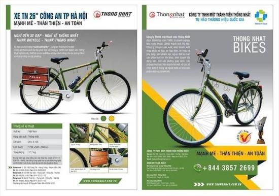 | Xe đạp tuần tra của Công an Hà Nội do công ty xe đạp Thống Nhất thiết kế và chế tạo. |