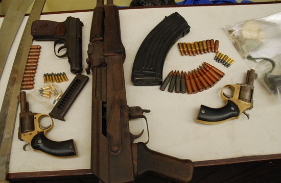 | Số vũ khí tội phạm mang đi để sử dụng bị công an Hà Nội thu. Ảnh: Hà Anh |
