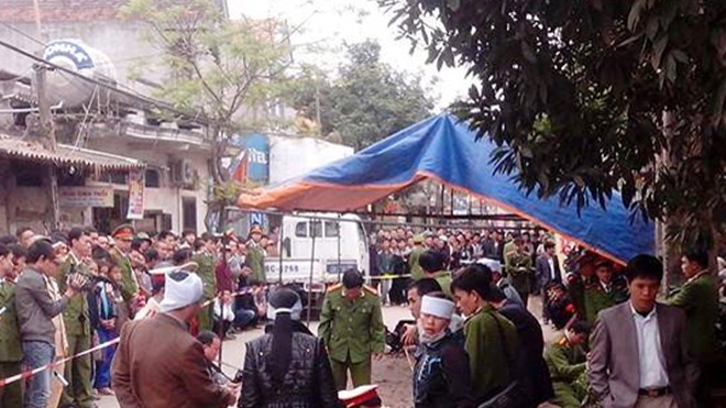 | Rất đông người dân đến theo dõi công tác khám nghiệm hiện trường, điều tra vụ việc. |