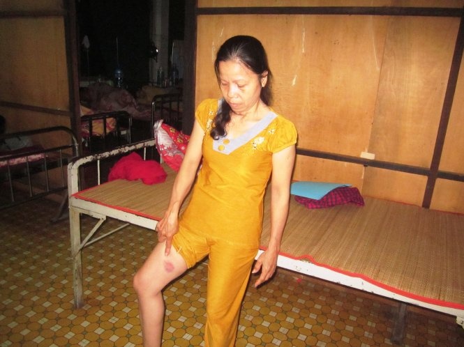 | Bà Thủy chỉ nơi bị đạn bắn trúng nhưng vết thương nhẹ. |