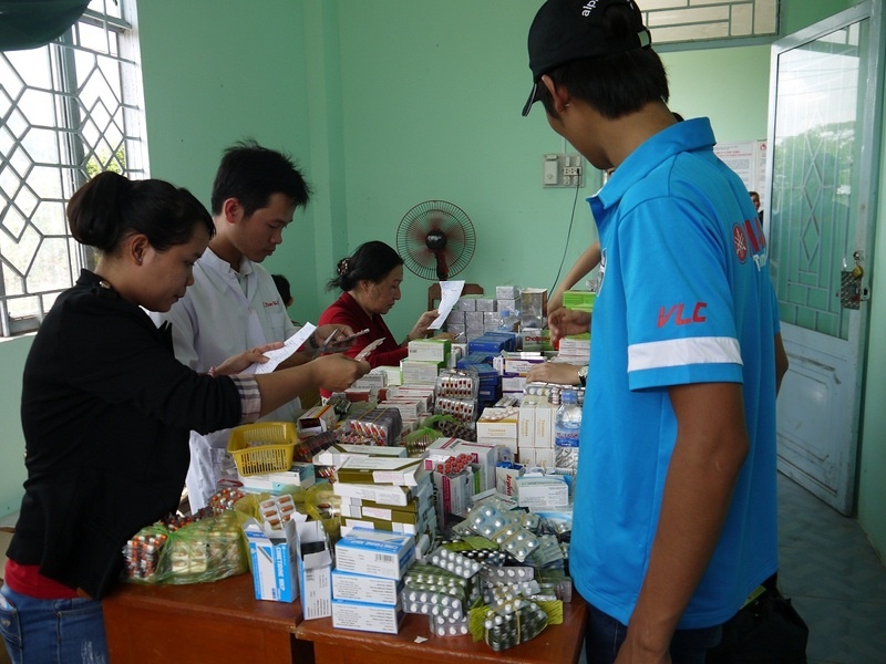 | Phát thuốc miễn phí cho người dân nơi đây. |