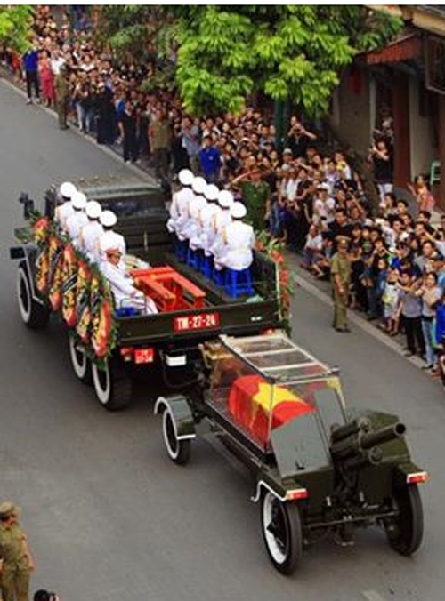 Trong khi đó, đầu giờ chiều nay, một bức ảnh chụp từ trên cao nhìn xuống dòng người theo dõi đoàn linh xa chở di quan Đại tướng được đông đảo cư dân mạng chia sẻ.