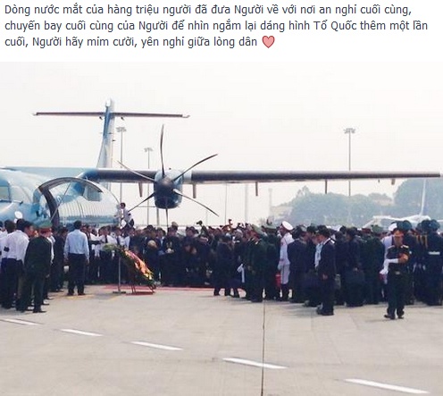 Trước đó, dù máy bay đã đưa di quan Đại tướng rời Hà Nội, những bức ảnh, dòng xúc cảm vẫn không ngừng được đăng tải lên mạng.