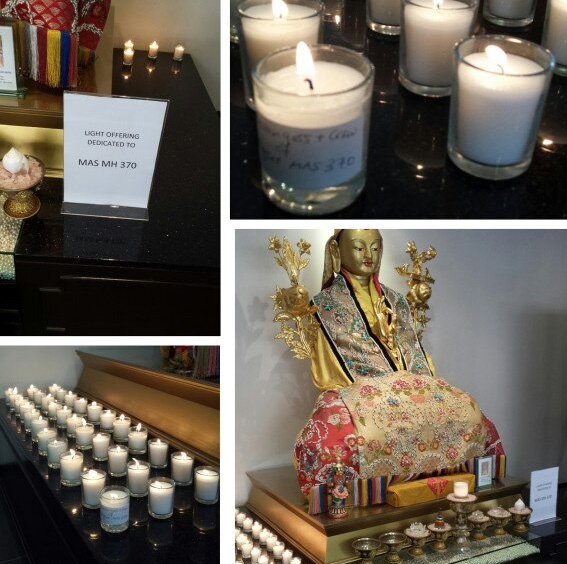 | Thành viên Kechara cùng bạn bè, gia đình thắp nến cầu nguyện cho phi hành đoàn chuyến bay đang bị mất tích. |