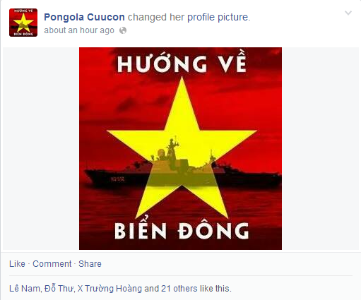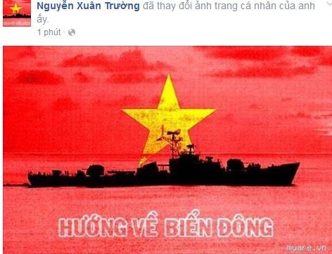 | Trong tối qua và sáng nay (8/5), khi tình hình tại Biển Đông đang trở nên nóng thì trên khắp các trang mạng xã hội, giới trẻ cùng nhau đổi avatar quốc kỳ Việt Nam hoặc hình ảnh thể hiện chủ quyền, sức mạnh dân tộc. |