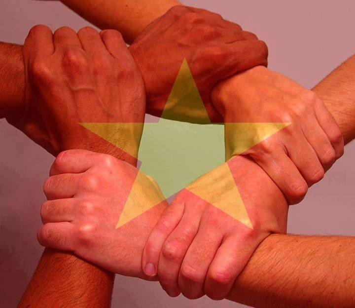 | 5 cánh tay đan vào nhau như thể hiện sự đoàn kết mạnh mẽ của cả dân tộc Việt Nam để quyết tâm giữ vững chủ quyền đât nước |