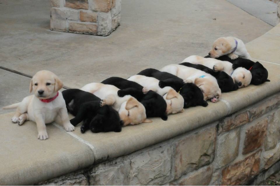 | Các chú cún xếp thẳng hàng khi ngủ. Khoảng khắc đáng yêu này nhận được hơn 120.000 lượt like (thích) và hàng nghìn chia sẻ. Ảnh: Diễn đàn T.G. |