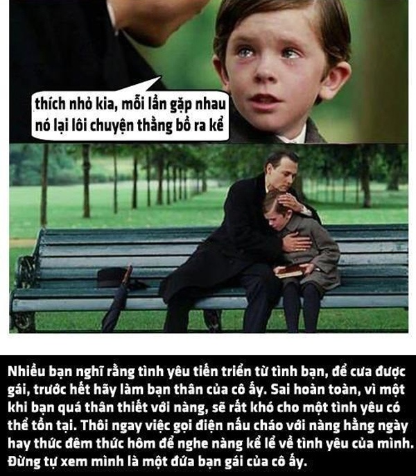 | Loại bỏ suy nghĩ sai lầm: Làm bạn trước rồi tiến tới tình yêu sau, bởi vì, nếu ngay từ ban đầu người con trai không làm cho cô gái họ yêu thấy được mục đích cốt lõi trong mối quan hệ đang tiến tới thì rất có thể cô ấy đi tìm những đối tượng khác bởi con gái thường không cảm thấy an tâm với những mối quan hệ không gọi thành tên. |