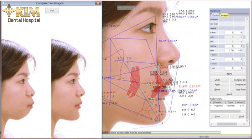 Bệnh viện KIM sử dụng phần mềm phân tích Vceph để mô phỏng hình ảnh trước và sau khi độn cằm V-line. |