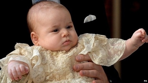 | Hoàng tử George trong lễ rửa tội hồi tháng 10/2013. Đây là lần thứ hai cậu xuất hiện trước công chúng. Ảnh: PA. |